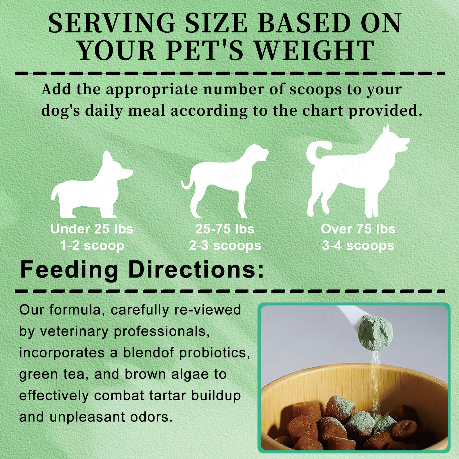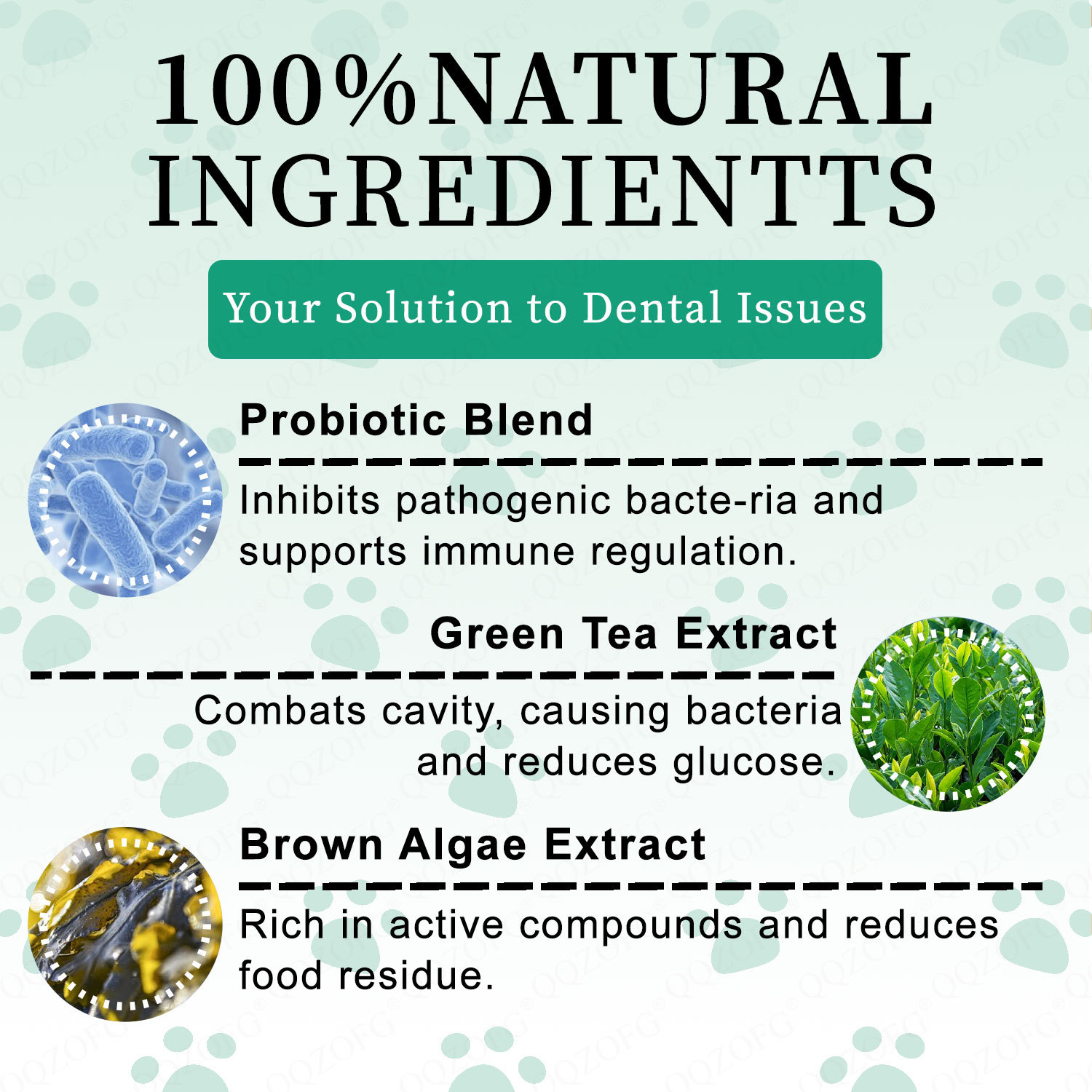 Our pet teeth cleaning powder works by breaking down plaque and tartar buildup. Because it’s formulated with natural ingredients, it’s safe for daily use. Unlike traditional toothbrushes, the powder blends easily into your pet’s food or water, making it convenient for busy pet parents. So, even if your pet resists brushing, they’ll still get clean teeth.